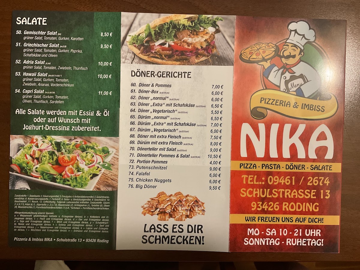Welcome to Pizzeria Nika, located at Schulstraße 13, Roding, Germany. This charming eatery offers a diverse menu that showcases an impressive range of pizzas and other delicious dishes. Customers rave about the extensive pizza selection, highlighting the delicious flavors and generous portions. One reviewer, Genoveva Celia Szabo, praises the friendly staff and affordable prices, making it a go-to spot for satisfying meals.